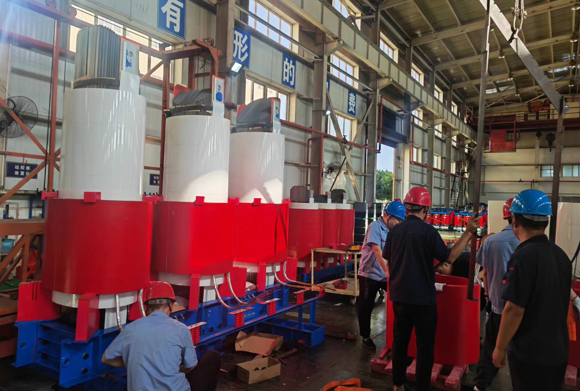 面对时间紧、任务重、难度高,又遇五十年不遇的高温酷暑天气,新环干变全体员工秉承“始于客户需求,终于客户满意”的经营服务理念,践行陕西电子的“敢于挑战,立信心;攻坚克难,求创新”的“敢•超”企业文化精神,上下一心,迎难而上,设计部门加班加点,保障产品整体性能,利用三维工具验证产品结构;采购部门克服国内新冠疫情各地散发可能导致原材料供应不及时情况和材料价格上涨的因素,保障供应;生产系统有序组织生产,按期交付。最终,产品一次性通过交接试验,顺利投运,圆满完成了客户重托,得到了客户好评。交付的8500kVA干式特种整流变压器空载损耗优于客户要求和原变压器,一年节约电费超过十万元。